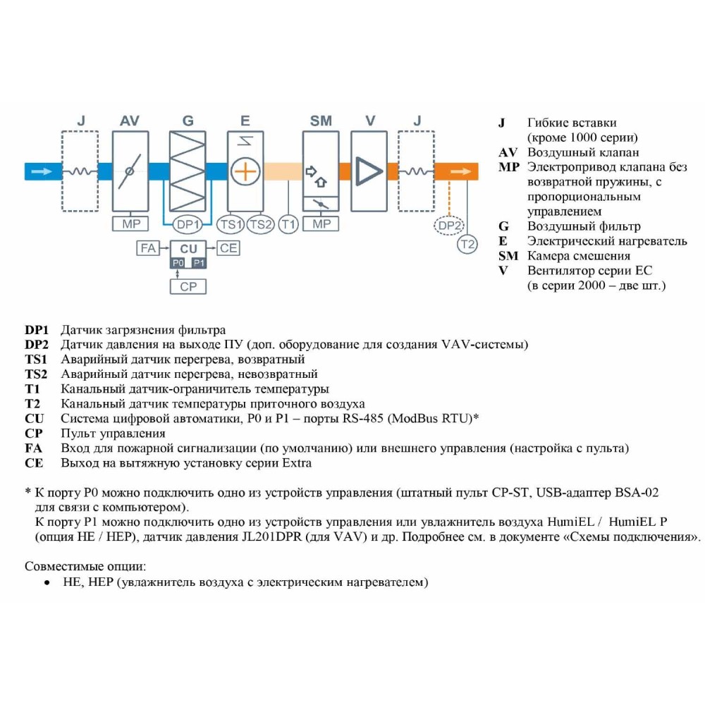 - Возможность управления увлажнителем воздуха с пульта вентустановки.