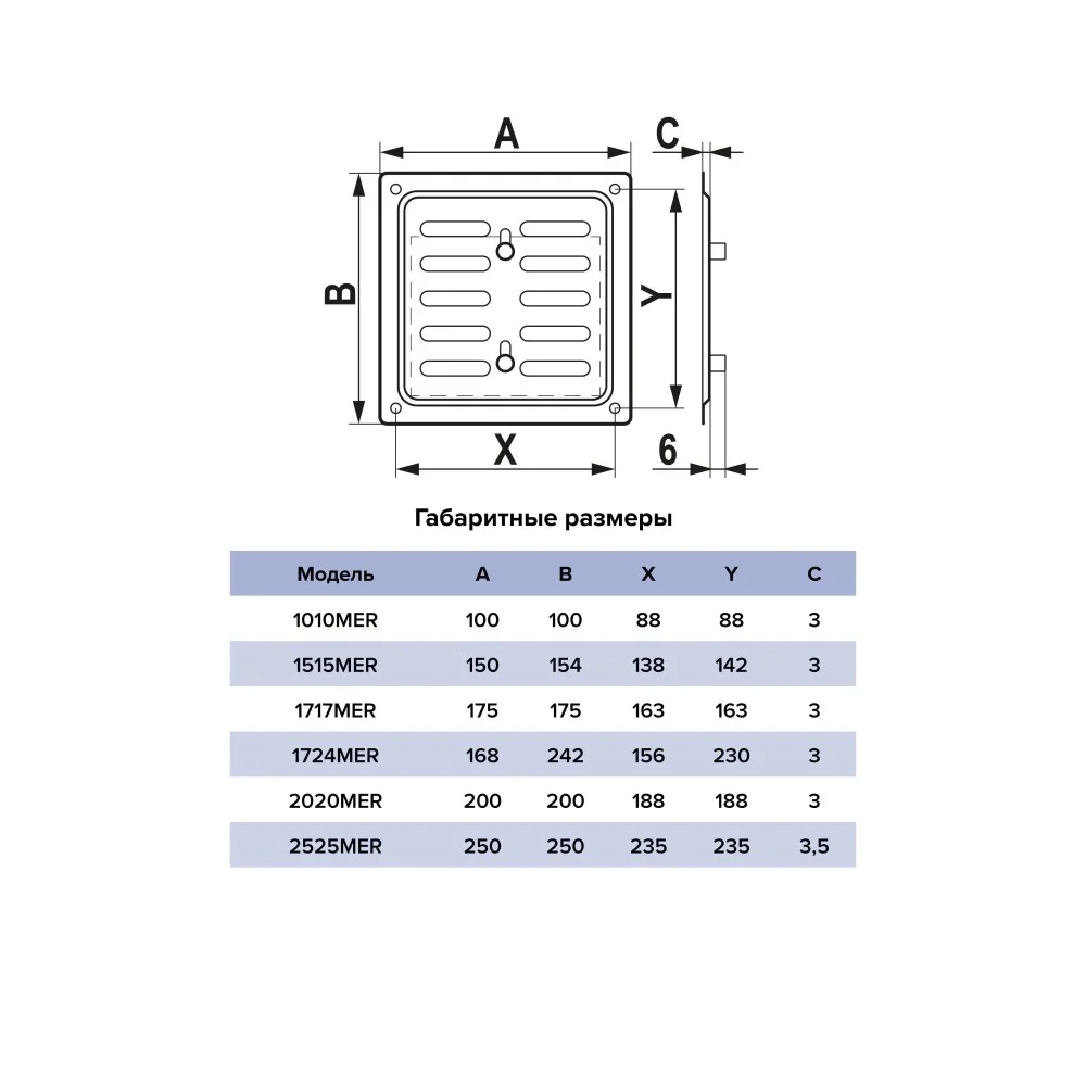 1010MER Решетка вентиляционная MER регулируемая 100x100 оцинк.сталь ERA