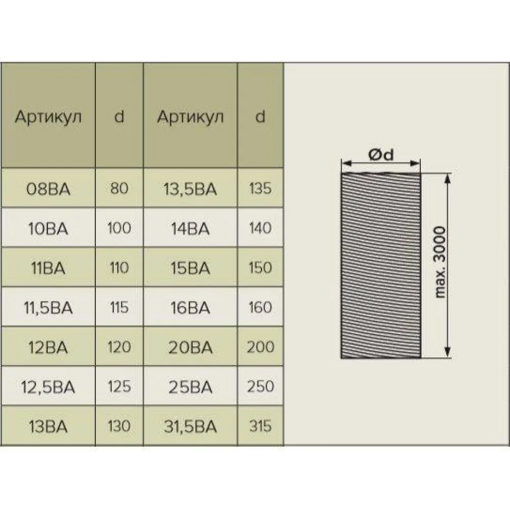 | 08ВА | 10ВА | 11ВА | 11,5ВА | 12ВА | 12,5ВА | 13ВА | 13,5ВА | 14ВА | 15ВА | 16ВА | 20ВА | 25ВА | 31,5ВА | |