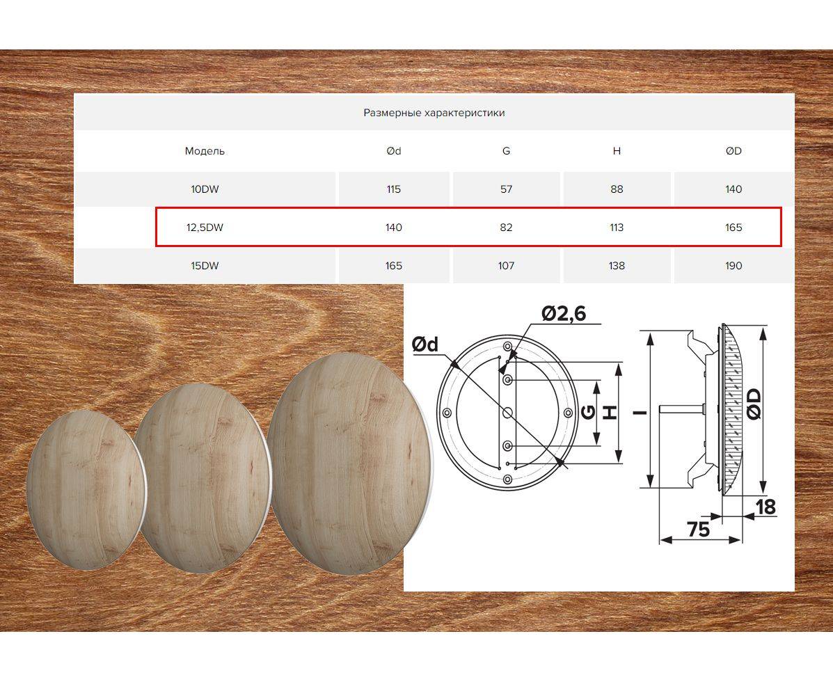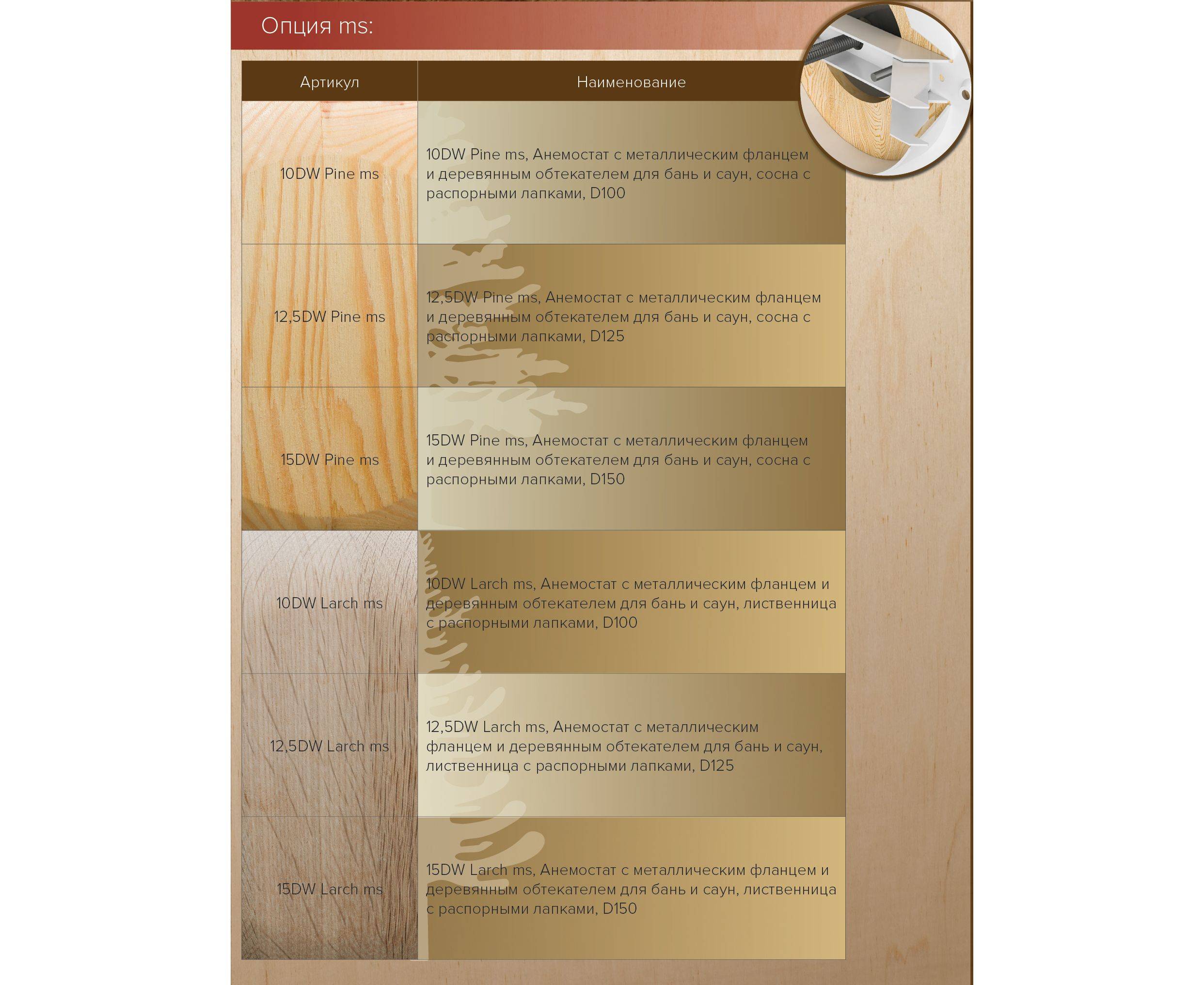 Анемостат 12,5DW MS Pine с металлическим фланцем, деревянным обтекателем и распорными лапками, d125 сосна