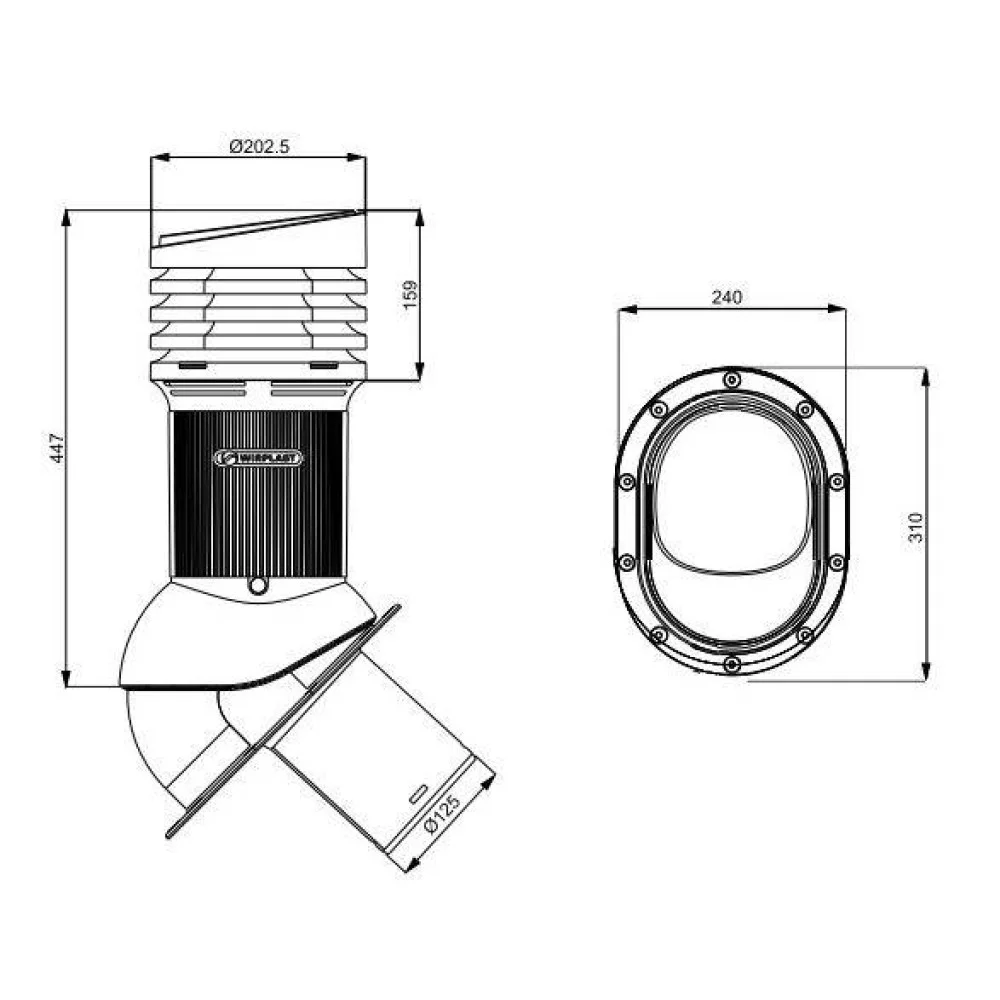 - Регулируемый угол наклона вентвыхода: 5° - 50°