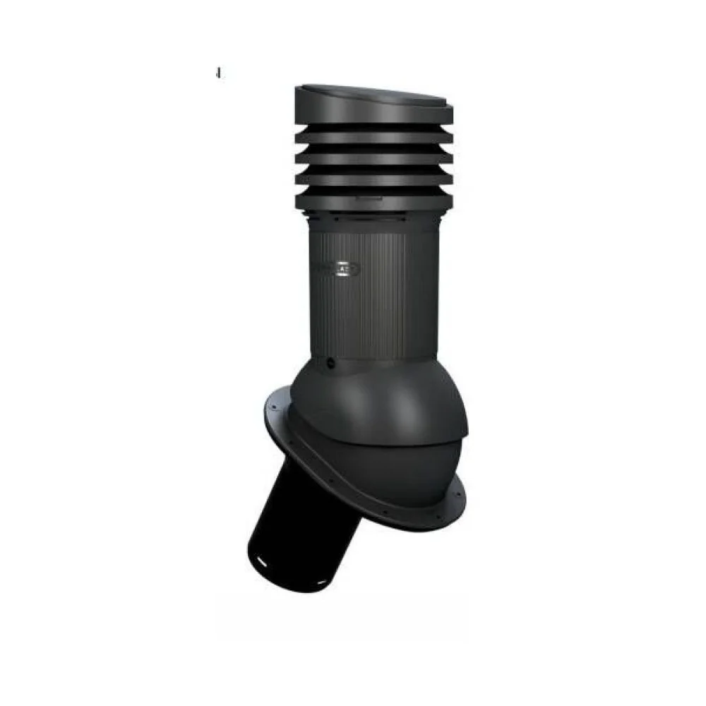 E09 Вентиляционный выход (не утепленный) D125/110 Н447 WIROVENT EVO с проходным элементом для гибкой битумной черепицы (готовой) и фальцевой кровли с переходником графитовый