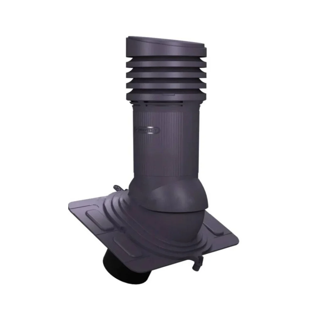 Комплект изолированного (утепленного) вентиляционного выхода с универсальным проходным элементом для низкопрофильных до 35 мм) металлических кровельных покрытий. Вентвыход со специальными каналами системы отвода конденсата на кровельное покрытие.