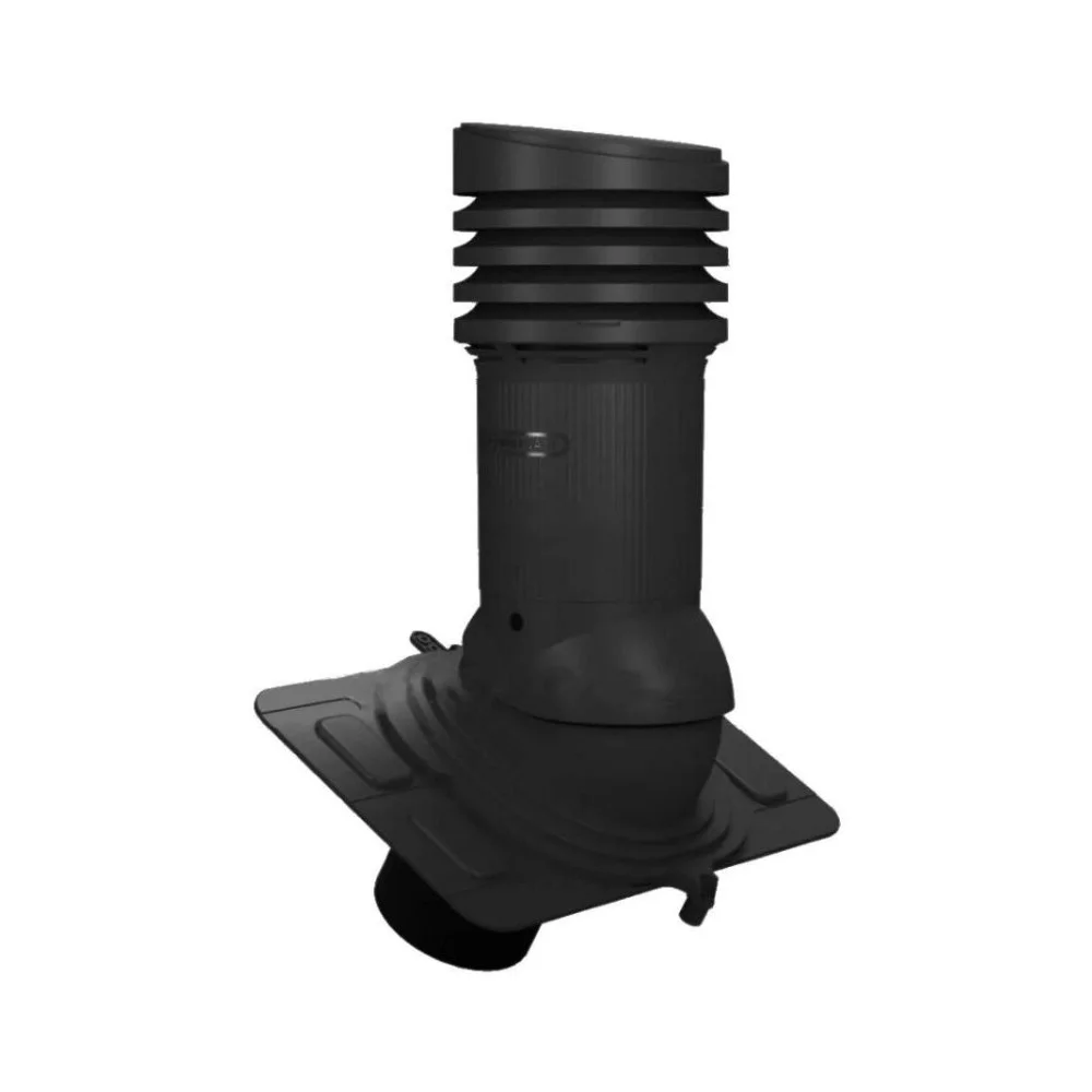 Вентиляционный выход WiroVent EVO E21 черный неизолированный D150 мм Н 490 мм универсальный для низкопрофильной металлической кровли с переходником