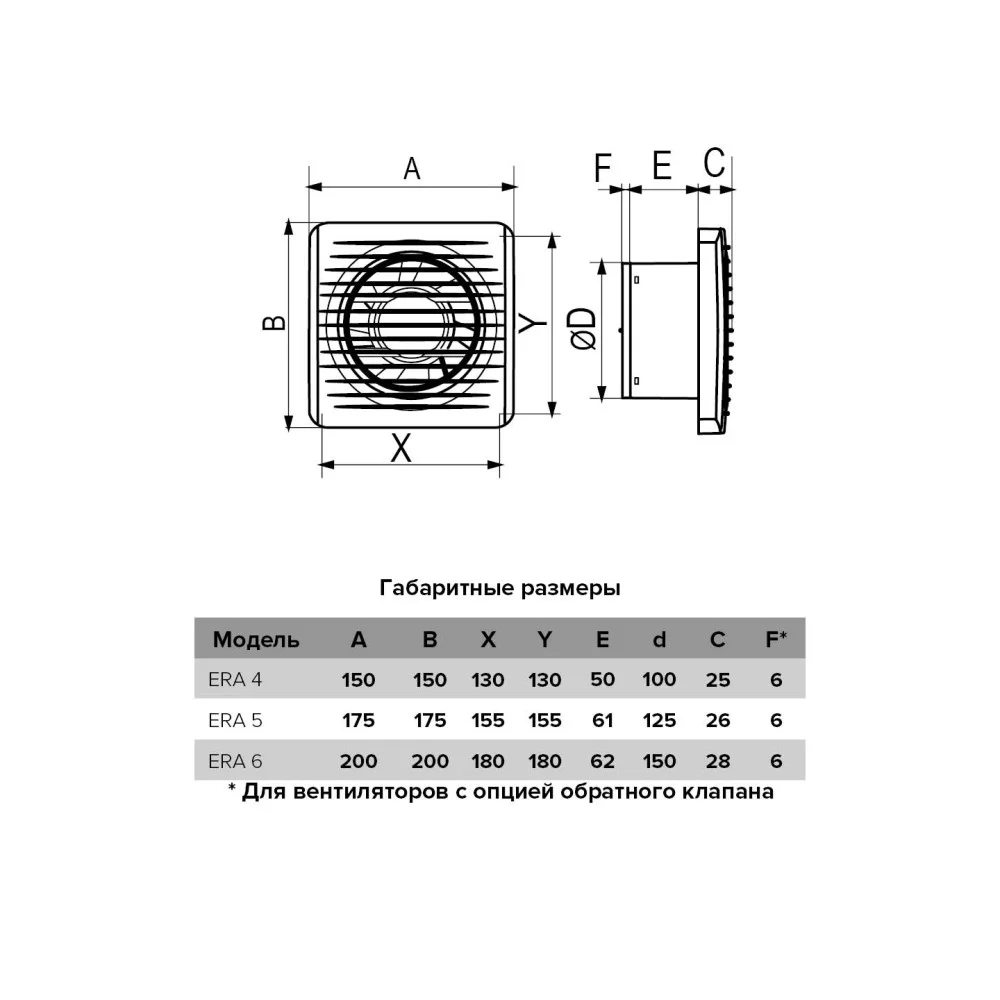 Обеспечьте эффективную вентиляцию в любом помещении с ERA – идеальным решением для удаления влаги, запахов и загрязненного воздуха. Этот бесшумный и энергоэффективный вентилятор создан для долговечной работы без лишнего обслуживания.
