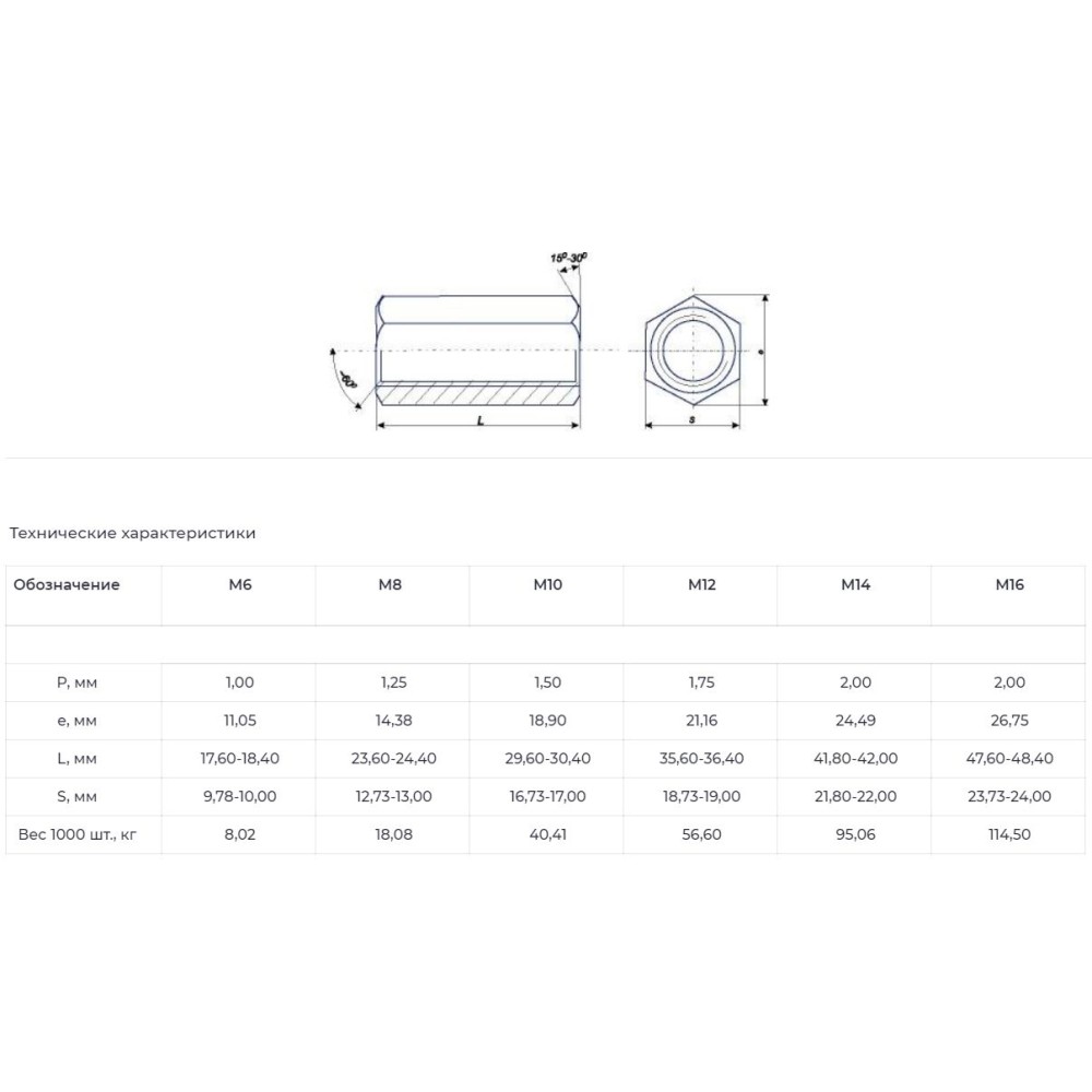 Муфта резьбовая соединительная применяется для наращивания шпилек с метрической резьбой - элемент с наружным шестигранником и внутренней резьбой.