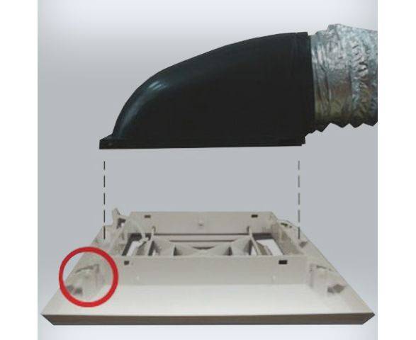 Пластиковый адаптер КС предназначен для подсоединения к потолочной решетке. Имеет врезку сбоку диаметром 250мм. применяется с решеткой СИ-ФИКС 420х420.