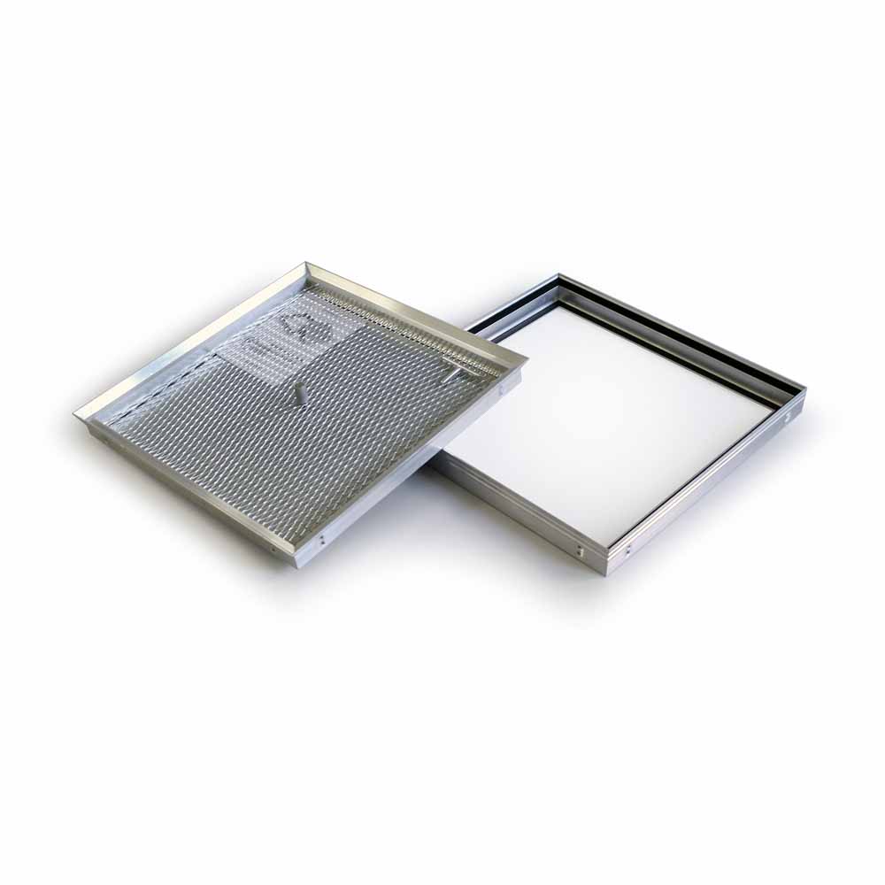 - Крышка люка 494х494 мм открывается с помощью Т-образной ручки. На крышку можно наклеить облицовочный материал большего размера — это поможет скрыть местоположение люка.