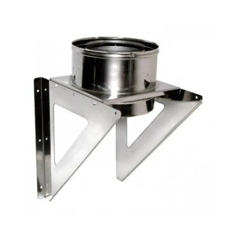 Для того чтобы установить дымоходную или вентиляционную трубу, используют специальные опоры для монтажной площадки, на которую непосредственно опирается весь дымоход. Опора применяется для усиления вертикального участка на выходе из стены, при монтаже отводов и тройников.
