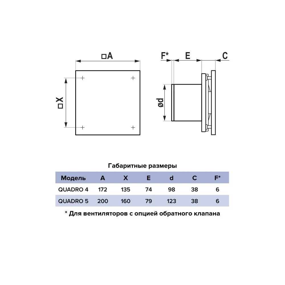 Вентилятор накладной QUADRO D100 обр.клапан ET ERA