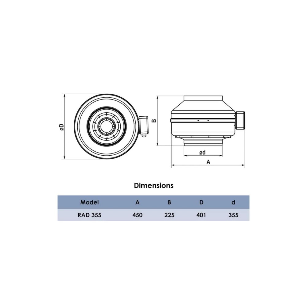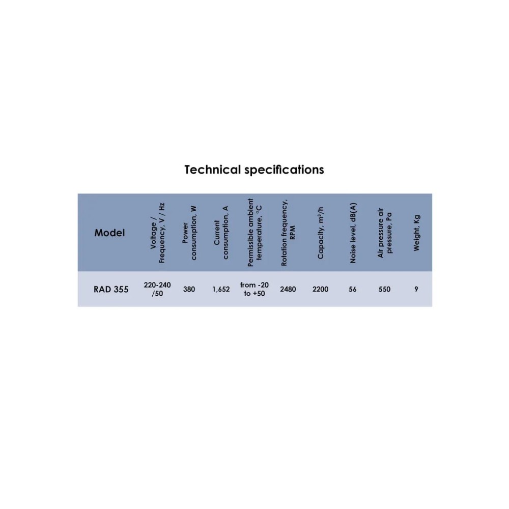 Выберите канальный вентилятор RAD 355 мм для создания мощной, эффективной и долговечной системы вентиляции вашего объекта.