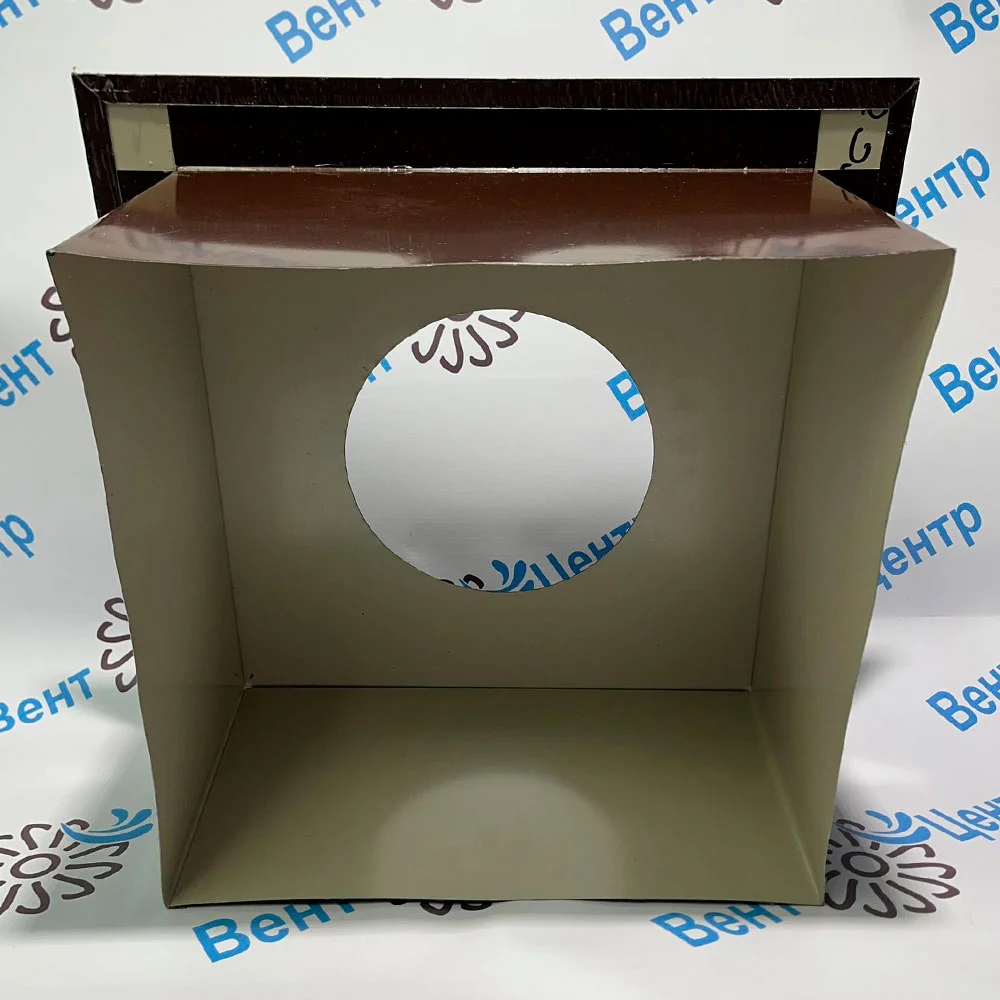 Потолочная разделка представляет собой металлический короб с круглым отверстием под определенный диаметр для прохода сэндвич трубы.