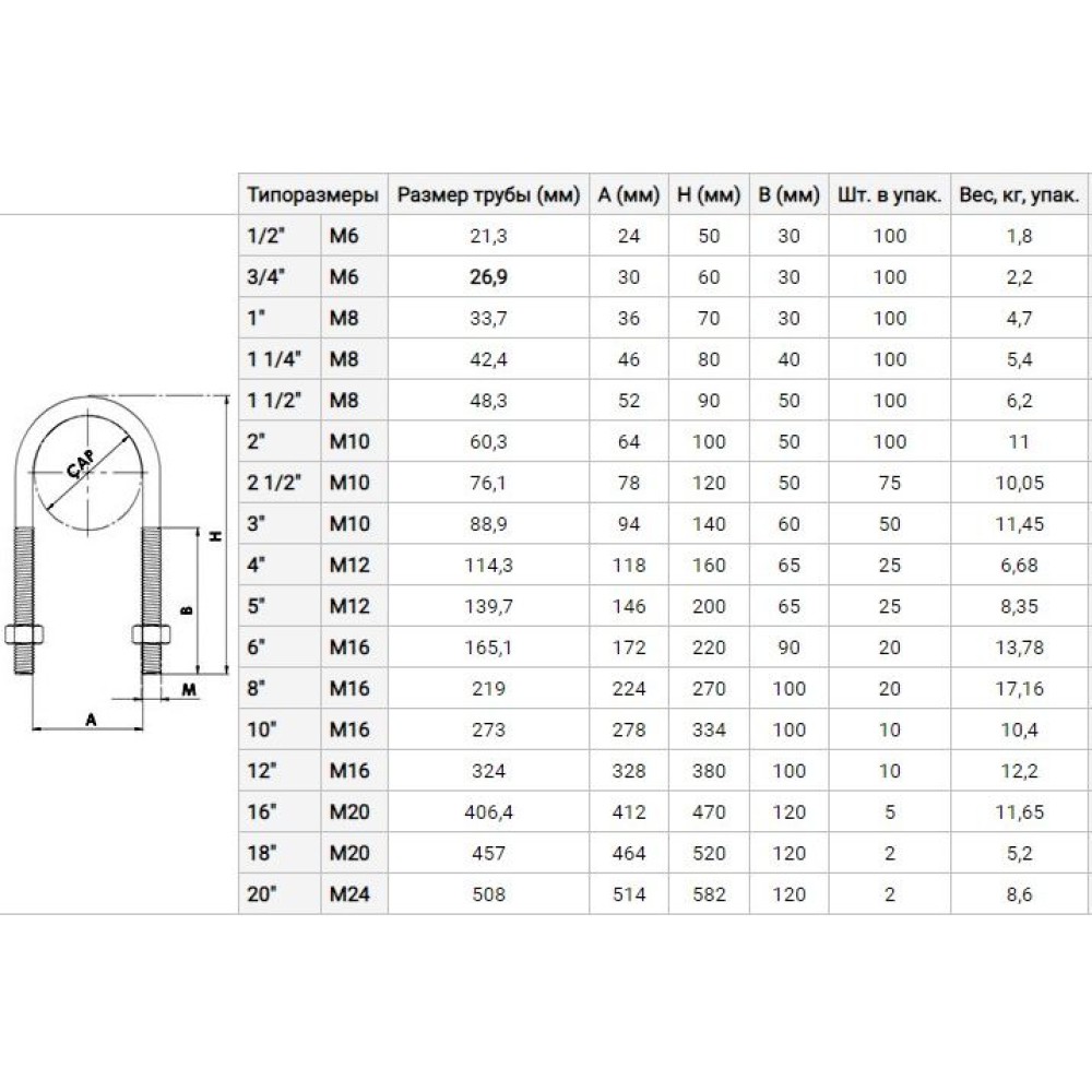U-образная скоба изготовлена из стали с гальванической оцинковкой. Изделие применяется для монтажа различных видов труб из чугуна либо стали. Это водопроводные, газопроводные, канализационные и отопительные конструкции. А также при установке круглых балок, кабелей и прутов.