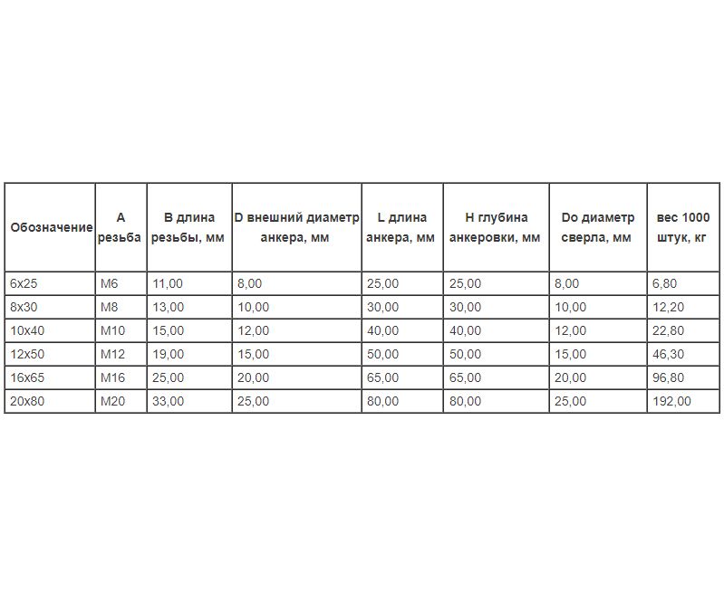 Применяется для ответственных креплений в бетоне без трещин, в кирпичной кладке. Используется для больших и средних нагрузок, может устанавливаться на небольшом расстоянии от других анкеров и края бетона.
