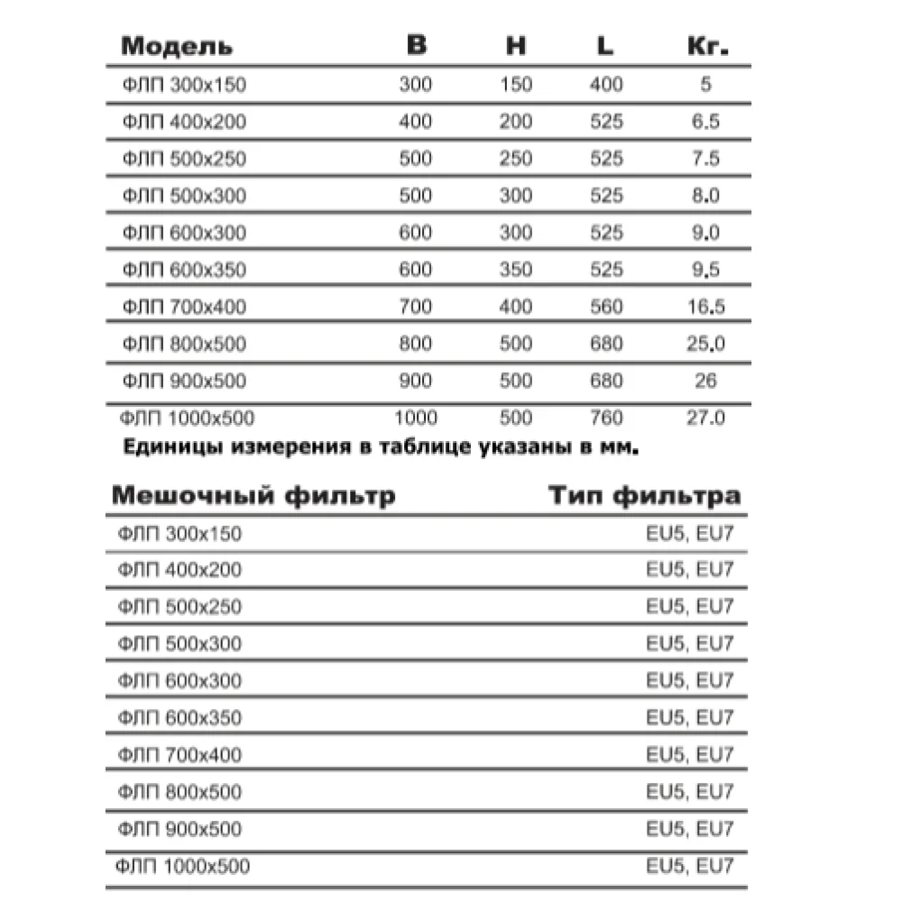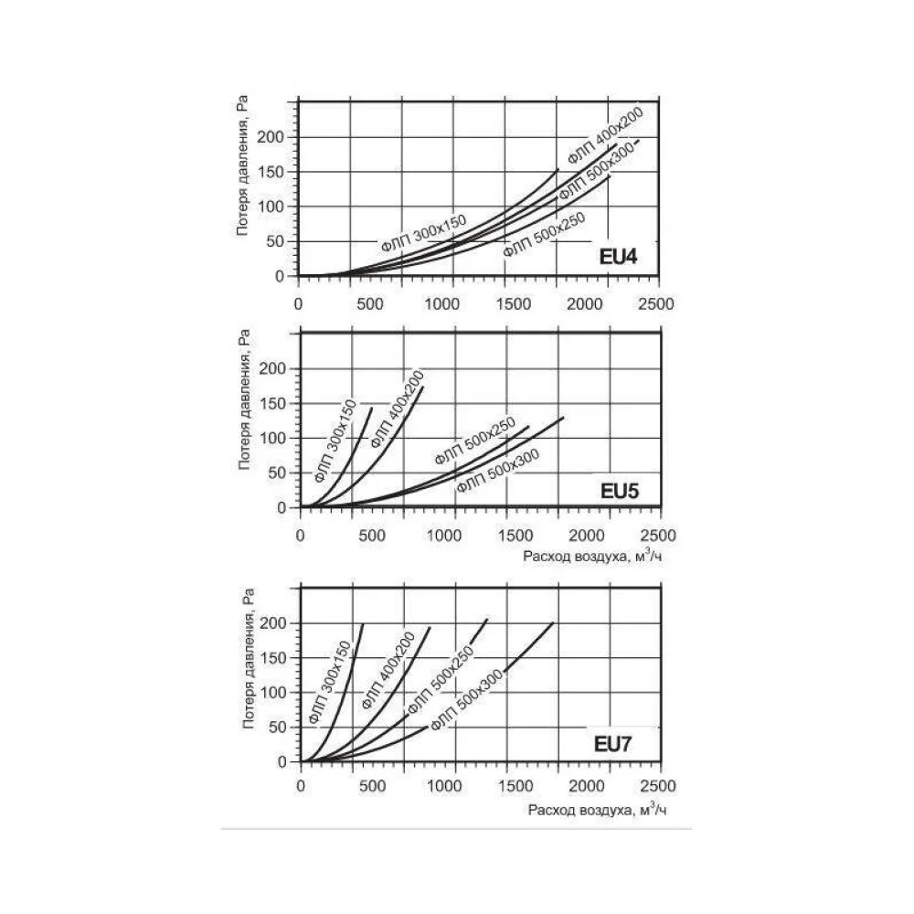 - Аэродинамическое сопротивление: EU5 - до 200Па, EU7 - до 250Па