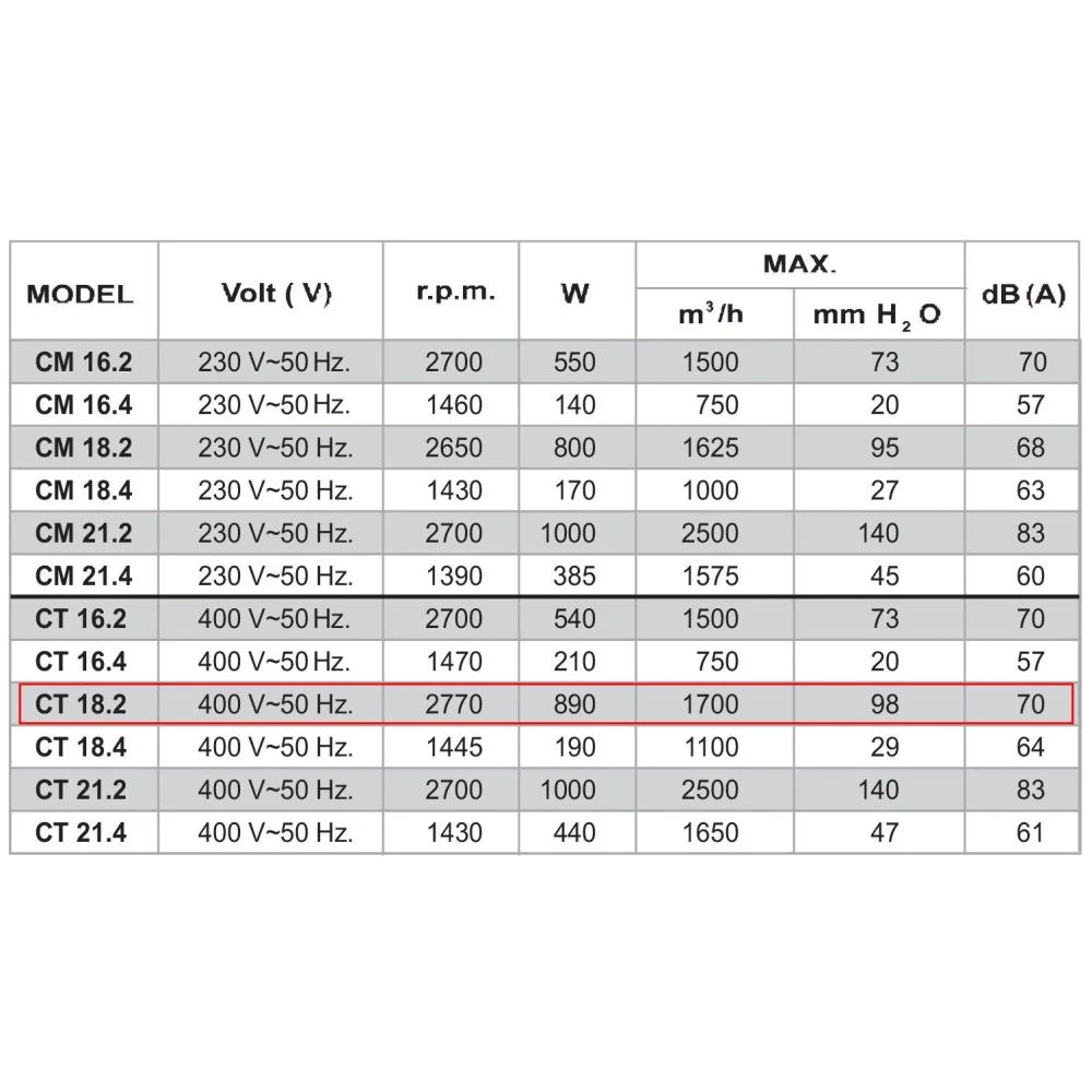 Профессиональная серия вентиляторов Dundar CM/CT 16.2, CM/CT 18.2, CM/CT 21.2 оснащена крыльчатками из оцинкованной стали с вперед загнутыми ламелями что увеличивает производительность и давление вентилятора.