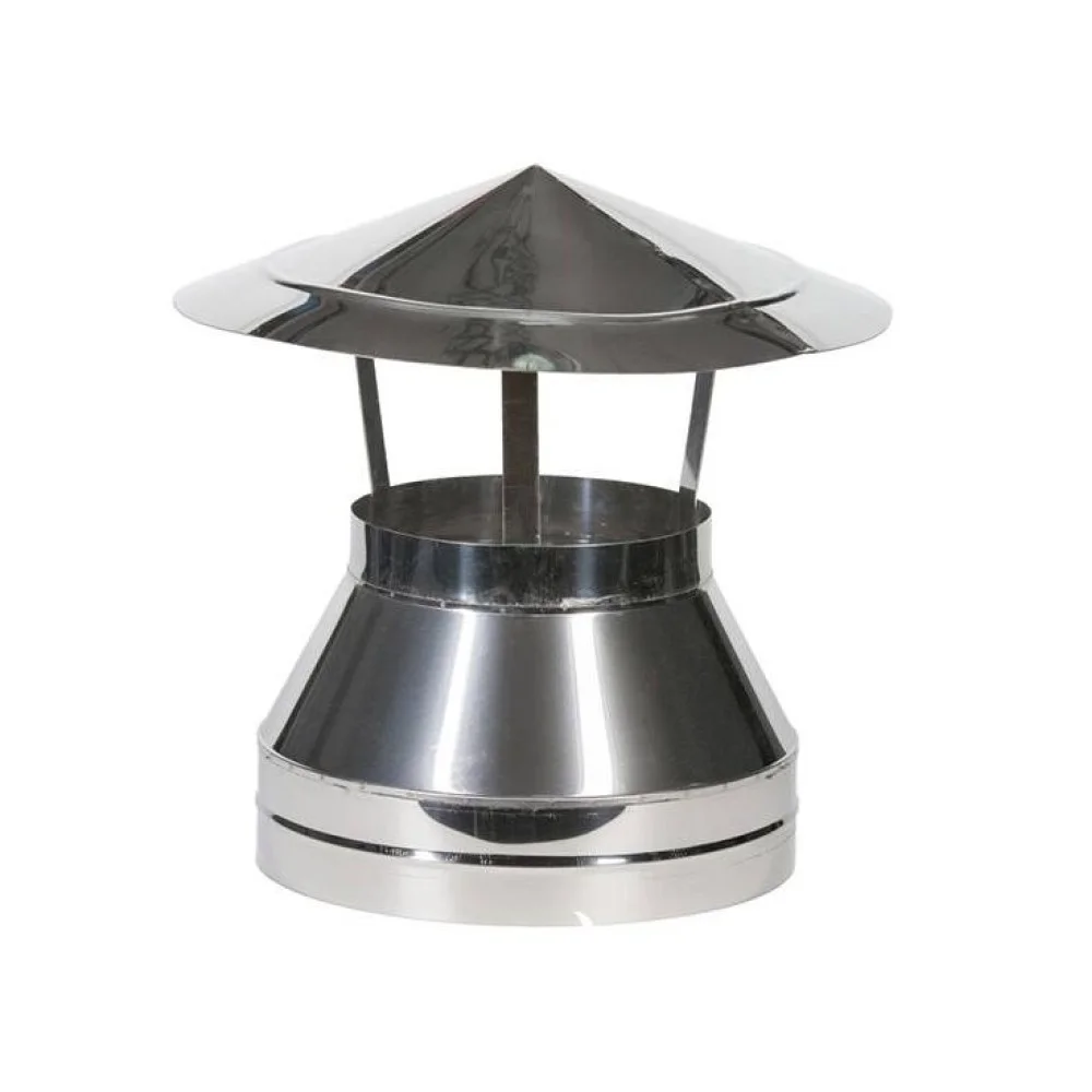 Зонт-оголовок предназначен для усиления тяги, как окончание системы сэндвич и предохранения дымохода от атмосферных осадков.